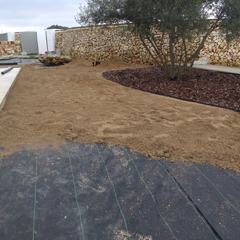 · Los complementos: césped artificial, vallas, iluminación, colocación de rocas, bolos, triturados, perfiles de separación, traviesas, etc.