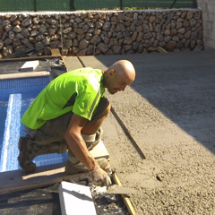 · La ejecución: muros, caminos, pavimentos, escaleras, piscinas, estanques, adoquinados, etc.